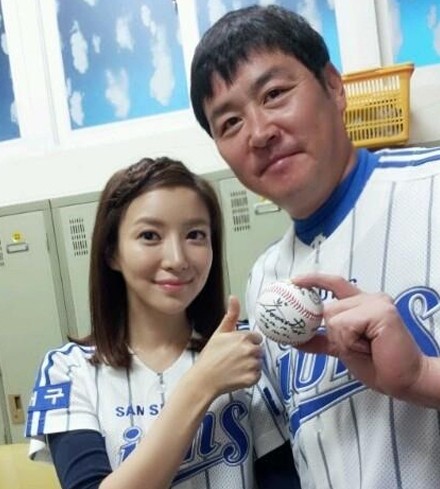 게재된 사진 속 윤세아는 삼성 라이온즈의 진갑용 포수와 함께 다정히 서서 카메라를 바라보고있다. 진갑용 선수는 싸인이 돼있는 야구공을 들고있고, 윤세아는 옆에서 엄지를 치켜세우며 미소짓고 있다.