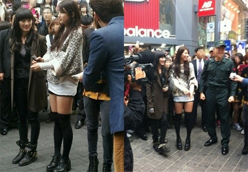 인기 여성 아이돌 그룹 미쓰에이의 ‘수지’가 명동에서 찍힌 사진이 화제를 낳고 있다.최근 온라인 커뮤니티에 ‘오늘 명동 수지 직찍’이라는 제목으로 올라온 이 사진에는 명동으로 보이는 길거리에 수지와 또 다른 미쓰에이 멤버 지아가 나온다.한 방송프로그램에 출연해 거리 인터뷰를 하고 있는 모습으로 보인다.수지의 주변은 그야말로 인산인해. 수많은 인파들이 발디딜 틈도 없는 것이 연예계 대세라는 수지의 인기를 실감케 한다.사진을 본 네티즌들은 “수지야, 삼촌이야”, “나도 이날 수지 봤는데 그야말로 여신있었음” 등의 반응을 보이고 있다.