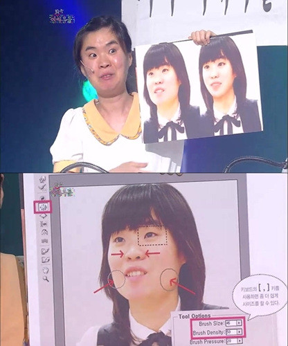 이어 "얼마 전 나는 인터넷에서 내 이름을 검색하다가 전국의 포토샵 학원에서 비포 애프터가 확실하다는 이유로 내 사진을 이용해 수업 하고 있다는 것을 알았다"라며 자신의 얼굴에 모델 장윤주의 몸을 합성한 사진을 선보였다.