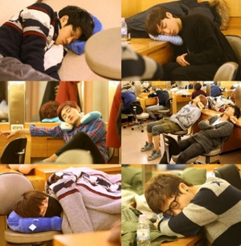 로이킴은 책상에 엎드린채 목베개를 베고 배꼽인사를 하듯이 공손히 손을 모으고 있어 잠이 들어있을 때에도 '바른 청년'이미지를 고수해 웃음을 자아낸다. 이 외에도 딕펑스의 김태현과 박가람은 나란히 의자에 앉아 목 베개를 하고 잠을 청하고 있으며, 허니지의 배재현도 목베개를 한 채 잠이 들어있어 '슈스케4' 참가자들의 피곤함이 느껴진다.