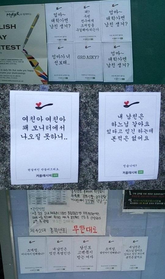 사진 속에는 한 여대 대자보에 붙여진 포스터가 가득했다. 내용이 웃음을 자아냈다.