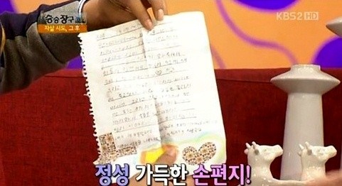 김장훈은 꼬마팬이 직접 보내 온 편지를 또박또박 읽어내려간뒤 함께 받은 '깜짝 선물'까지 공개했다.