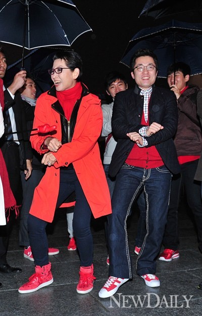 31일 오후 서울 광화문광장에서 열린 청바지쇼(청년들이 바라는 지도자 쇼)에 청바지에 후드티 차림으로 박근혜 대선 후보가 참석했다.