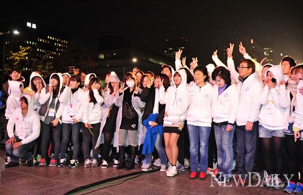 31일 오후 서울 광화문광장에서 열린 청바지쇼(청년들이 바라는 지도자 쇼)에 청바지에 후드티 차림으로 박근혜 대선 후보가 참석했다.