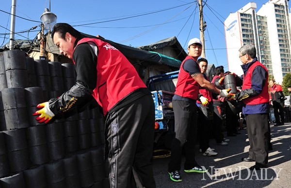 미국 메이저리그 추신수(클리블랜드 인디언스)와 롯데호텔(대표이사 송용덕) 임직원들은 1일 서울 마포구 아현동에서 '2012 사랑의 연탄 나눔 행사'를 열어 독거 노인들을 위한 연탄을 준비했다.