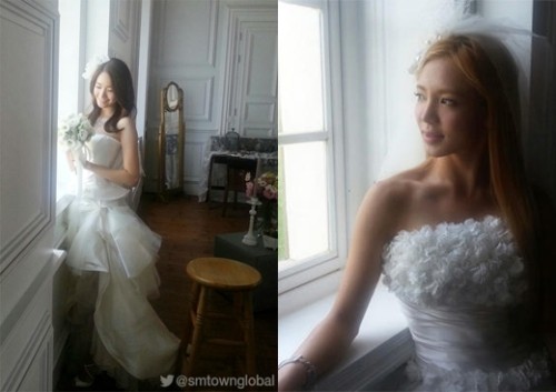 지난달 30일 SM엔터테인먼트 글로벌 트위터에는 소녀시대 멤버 윤아 효연의 웨딩드레스 사진이 게재됐다.