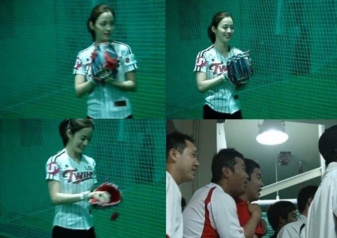 최근 한 온라인 커뮤니티 게시판에는 '김태희 본 야구선수들'이라는 제목의 사진이 등장했다. 사진에는 김태희가 시구를 연습하고 있고 이 장면을 지켜보는 보는 야구선수들의 반응이 담겨 있다.