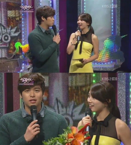 수지는 2일 방송된 KBS 2TV '뮤직뱅크'에서 특별MC로 나서 이장우와 함께 진행을 맡았다.
