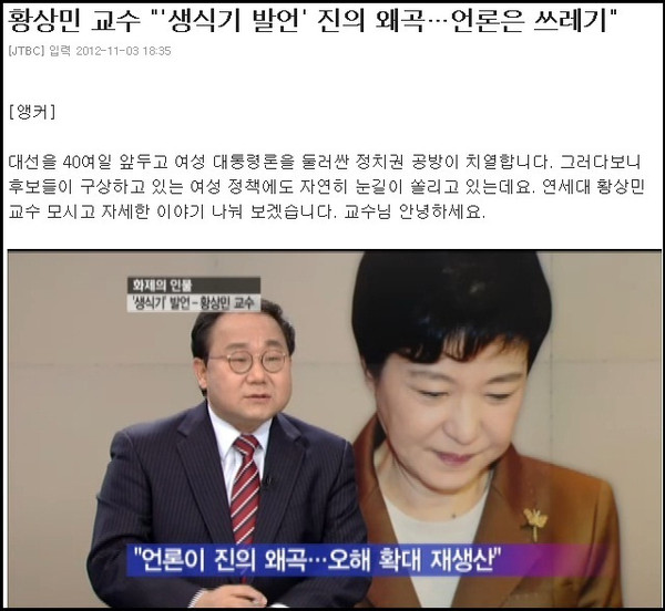 황상민 교수는 3일 <jtbc>에 출연해 다음과 같은 비판을 언론사들에 했다고 한다