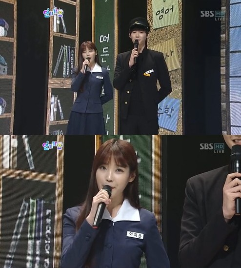아이유는 지난 4일 방송된 SBS '인기가요'에서 MC 이종석과 함께 복고풍 교복 차림을 선보였다.