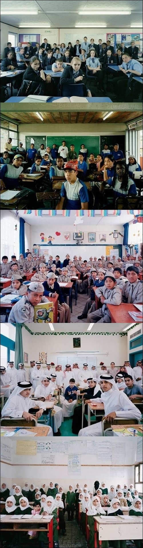 공개된 사진에는 유럽, 미국, 브라질, 아르헨티나, 등등 세계 각국의 교실을 돌며 찍은 학생들의 모습이 담겨 있다.