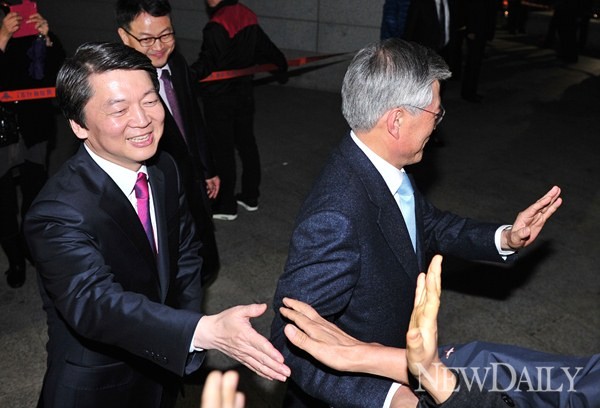 민주통합당 문재인, 무소속 안철수 대선후보가 6일 오후 서울 용산구 백범김구기념관에서 야권 후보 단일화를 위한 첫 회동을 가졌다.