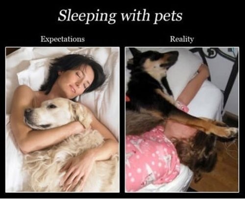 '개와 잘 때 내 모습' 사진을 접한 네티즌들은 "원래 상상과 현실은 다른 법" "대박 웃김 완전 굴욕이다" "사는게 상상과 같으면 좋으련만" "드라마 영화로 인한 상상의 나라는 없음" "근데 저 개는 너무 발로 찼다" 등의 다양한 반응을 보였다.