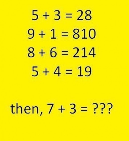 '7+3=410' 역시 같은 방법으로 '7-3=4', '7+3=10'이므로 '410'이 답이다.