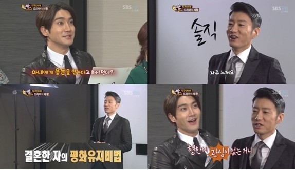 김명민의 답변에 최시원은 "이런 말씀드리기 좀 그렇지만 결혼하신 줄 몰랐다"고 말하자 김명민은 "너 형한테 관심이 없니"라고 농을 쳐 배우들을 폭소케했다.