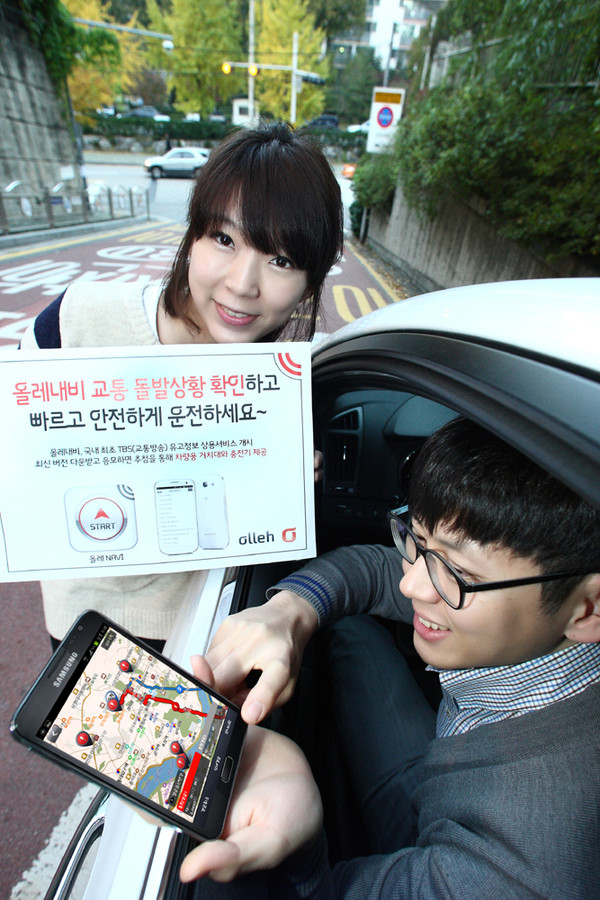 올레내비, 사고·통제 등 TBS제공 실시간 돌발 교통정보 서비스돌발 교통상황 발생지점 우회경로 자동검색으로 안전운행 지원새로운 올레내비 이용고객 중 추첨 통해 충전기와 거치대 세트