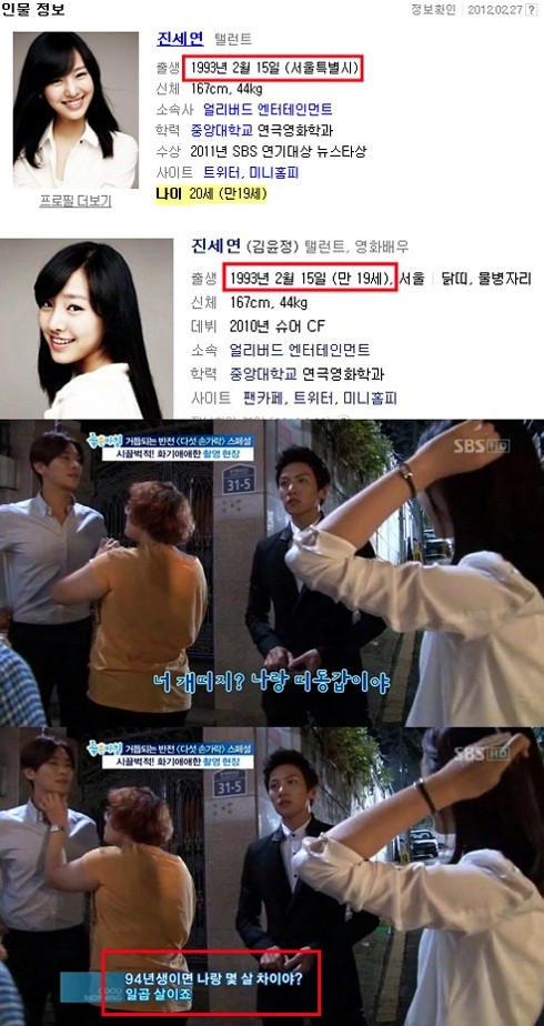 이에 진세연의 소속사 측은 "진세연이 고등학교 1학년 때 데뷔했는데, 1994년생이라고 하면 고1로 보지 않고 중3으로 본다. 배우로서 중학생과 고등학생 느낌이 다르기도 하고 아역보다는 성인 연기를 고집하기 때문에 93년생으로 기재했던 것"이라고 설명했다.