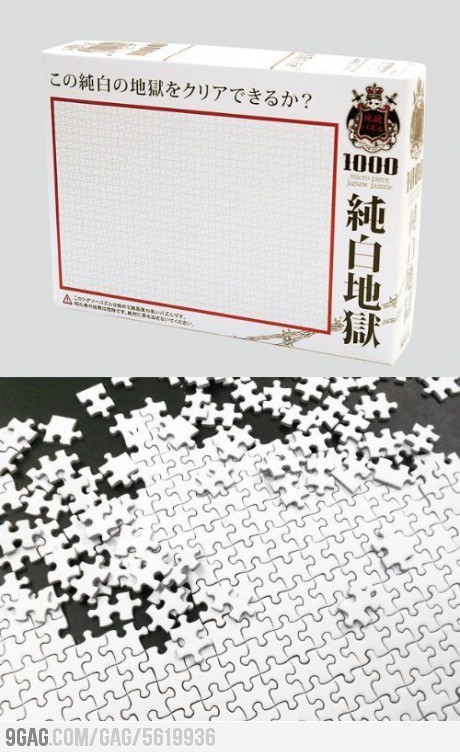 이 퍼즐을 촬영한 사진 속에는 그림이 없는 무수한 퍼즐조각이 어지럽게 널려있고, 퍼즐 상자에는 '순백의 지옥을 클리어 할 수 있는 자가 있는가'라는 문구가 적혀 있다.