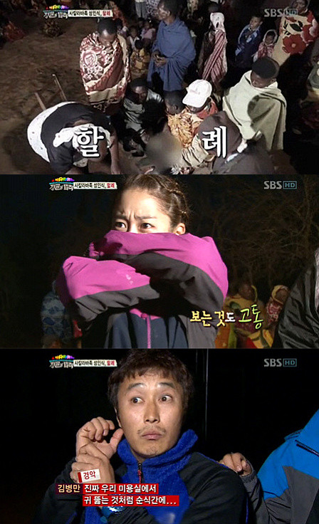 '정글의 법칙2' 병만족이 마취 없는 할례의식을 눈앞에서 보고 경악을 금치 못했다.11일 방송된 SBS '일요일이 좋다-정글의 법칙2'에서는 사칼라바족이 사는 망길리 마을에서 펼쳐진 남자아이들의 성인식 '할례' 의식을 목격하고 충격에 빠진 병만족의 모습이 공개됐다.