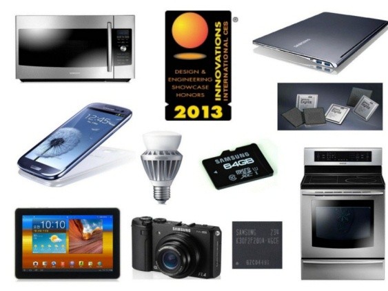 삼성전자는 TV(6개), 홈시어터(2개), PC(2개), 모니터(3개), 스마트폰/태블릿(4개), 오븐(2개), 디지털카메라, 프린터, 투명디스플레이, LED스마트전구 등 23개의 제품과 D램(2개), AP(Application Processor), 마이크로 SD카드 등 4개의 부품 등 총 27개 제품이 'CES 2013 혁신상'을 수상한다.