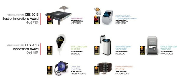모뉴엘은 지난 2007년 첫 CES부터 출품해 왔으며 지난해에는 6개 부분에서 ‘혁신상’을 수상한바 있다. 잘만테크도 ‘CES 2009’와 ‘CES 2008’, ‘CES 2006’에서 ‘혁신상’을 수상했다.