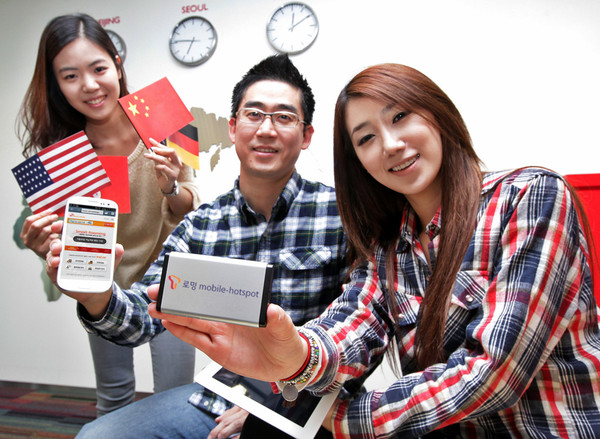 ‘T로밍 모바일 핫스팟’은 SKT 로밍센터를 방문해 대여하면 된다. 오는 12월부터는 SKT 고객은 물론 타사 고객들도 이용이 가능해 진다.
