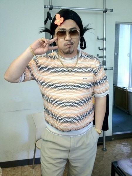 특히 그의 트레이드 마크인 잠자리 선글라스와 금목걸이들을 주렁주렁 착용한 채 이와 어울리지 않는 일명 '삐삐 머리' 가발을 착용하고 있다.