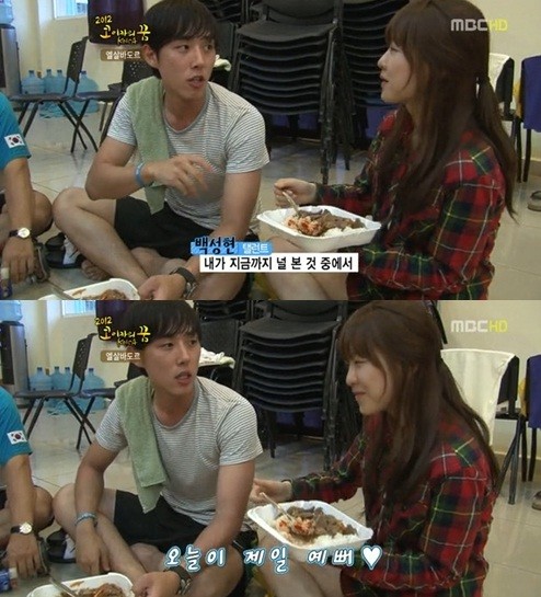 이후 식사시간에 백성현은 김치가 담긴 밥을 먹으며 옆에 앉은 박보영에게 "지금까지 널 본 모습 중에 오늘이 제일 예뻐"라고 고백하며 김치를 가져다준 것에 대한 고마움을 전했다. 이에 박보영은 환한 미소로 화답하며 현장 분위기를 화기애애하게 만들었다.