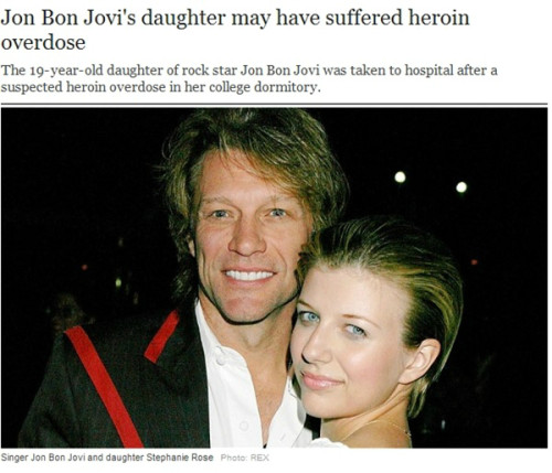 14일(현지시각) 영국 매체 텔레그래프는 "본 조비의 딸 스테파니가 헤로인(마약류) 과다복용 혐의로 체포됐다"고 보도했다.