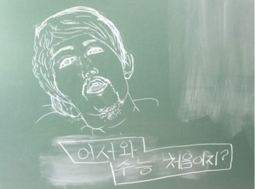 수능 시험 전 한 칠판에 그려진 낙서가 뒤늦게 화제선상에 올랐다.