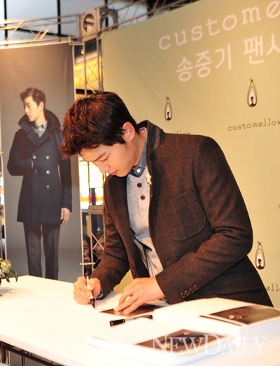 영 젠틀맨 룩을 지향하는 커스텀멜로우(customellow)의 모델 송중기의 팬 사인회가 16일 오후 홍대 커스텀멜로우 H스토어에서 진행됐다.