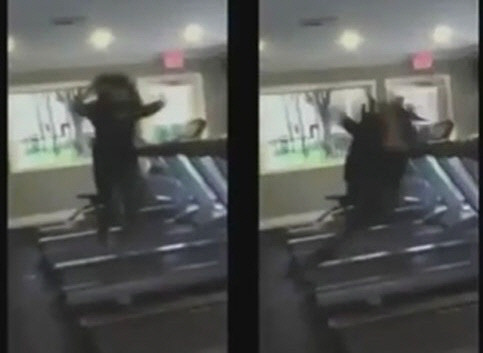 공개된 사진 속 외국인 여성은 런닝머신 위를 질주하다가 우습꽝스러운 모습으로 넘어졌다.