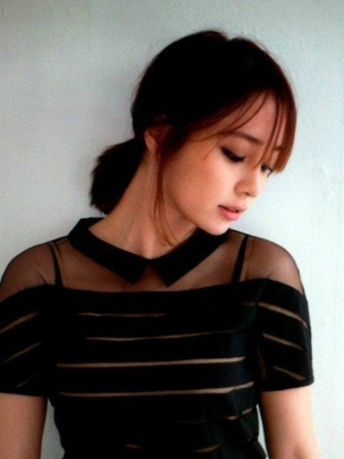 지난 16일 업로드 된 사진에서 이민정은 머리를 뒤로 묶은 채 아래를 내려다보고 있는 포즈를 취하고 있다.