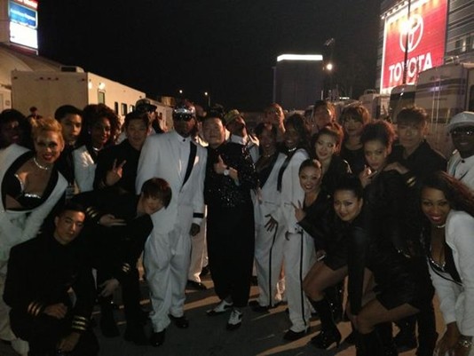 게재된 사진 속에는 2012 아메리칸 뮤직 어워드(American Music Awards)에 참여한 세계적인 힙합 뮤지션 MC해머와 싸이, 수십명의 백댄서들이 카메라를 향해 다정한 포즈를 취하고 있다.