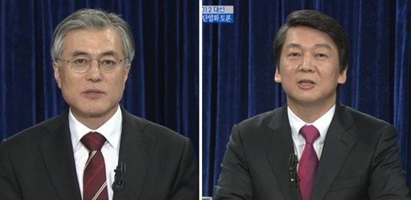 안철수 무소속 후보와 문재인 민주통합당 후보의 단일화 TV토론이 21일 밤 11시 15분 시작되면서 관심을 모으고 있다.처음이자 마지막 TV토론인 만큼 문재인-안철수 두 후보의 기싸움이 치열한 것은 물론, 두 후보의 지지자들로 보이는 네티즌들의 갑론을박도 뜨겁다.