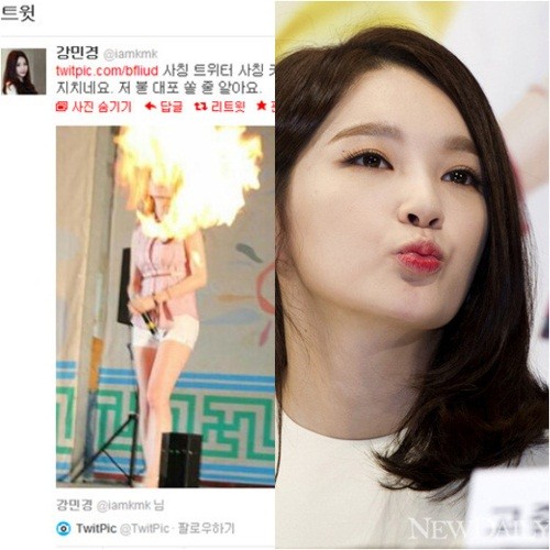 여성듀오 다비치 멤버이자 연기자 강민경이 자신의 사칭하는 사람들에게 경고의 메시지를 전했다.강민경은 23일 자신의 트위터를 통해 "사칭 트위터, 사칭 카카오톡, 사칭 카카오스토리... 지치네요. 저 불대포 쏠 줄 알아요"라는 메시지와 함께 신분확인이 불가한 사진을 링크해 게재했다.