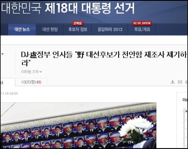 김대중·노무현 좌익정권의 핵심인사들이 참여한 한반도평화포럼이 23일 문재인 민주당 대선 후보 등 야권(野圈) 후보들이 천안함 폭침(爆沈)사건에 대한 재조사를 제기하라고 촉구했다고 한다. 평화의 이름으로 북괴의 입장을 대변하면서, 한반도에 전쟁을 일으킬 좌익분자들이 아군함의 침몰을 두고 북괴의 시각에서 천안함 피격사건을 판단하고 있는 것이다.