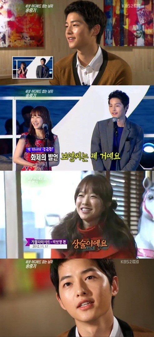 배우 송중기가 "박보영은 내 것"이라는 발언이 상술이라고 솔직하게 인정했다.지난 11월 24일 방송된 KBS 2TV '연예가중계'에서는 송중기의 광고 촬영현장이 공개돼 눈길을 끌었다.