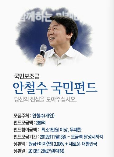 당초 안철수 캠프 측은 펀드로 조성된 돈을 선거가 끝난 뒤인 2월27일 상환할 예정이었다. 15% 이상 득표한 후보에게 선거 비용 전액을 보전해주는 선거 보전금을 받아 갚겠다는 계획이었다.