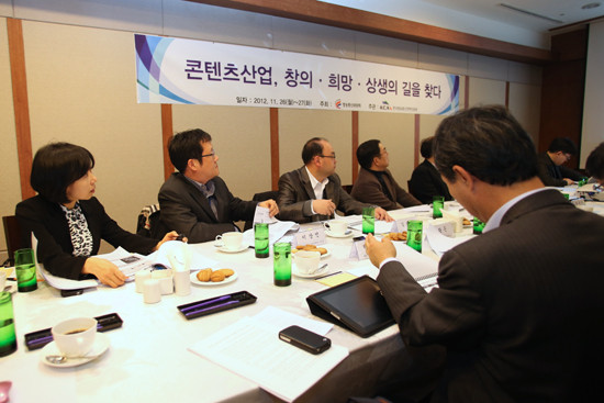 ‘콘텐츠 강소기업 창출방안’과 ‘콘텐츠 창작인프라 조성 및 핵심기술개발’,‘콘텐츠산업 종사자의 사회안전망 구축방안’, ‘콘텐츠 관련 법·제도와 정부조직체계 개편방안’ 등 4개 소주제로 나눠 30여 명의 산·학·연 관계자가 모여 토론을 펼쳤다.