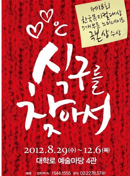 뮤지컬 ‘식구를 찾아서’는 2010년 창작팩토리 지원사업으로 선정, 2011년 대구국제뮤지컬페스티벌에서 창작뮤지컬상을 수상하며 뮤지컬계의 핫 아이콘으로 떠오른 작품. 현재 대학로 예술마당 4관에서 한창 공연 중이다.