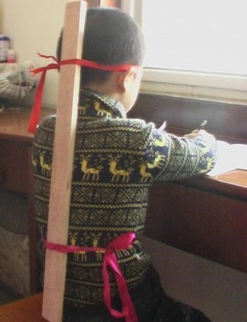 공개된 사진에는 공부에 집중하는 초등학생의 모습이 담겨있는데, 특히 긴 각목을 머리와 허리에 묶은 채 책상앞에서 흐르러짐 없이 자세를 바르게 하고 있어 불타는 학구열을 가늠케 한다.