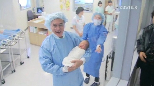 바깥 상황을 파악 못한 간호사가 신생아를 안고 있는 문재인 후보에게 '이제 그만 아이를 달라'며 두 팔을 벌리고 다가간다. 그러나 문 후보는 간호사의 요구에도 아랑곳하지 않고 되레 카메라 기자들이 있는 오른편을 향해 포즈를 취한다. 뒤늦게 상황을 파악한 간호사가 취재진의 눈치를 보며 슬금슬금 뒷걸음질을 친다.