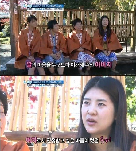 이날 강유미 모녀, 안영미 모녀는 함께 일본여행을 떠났다. 강유미는 이들과 온천 데이트를 즐기던 중 양악수술에 대한 솔직한 심경을 털어놨다.