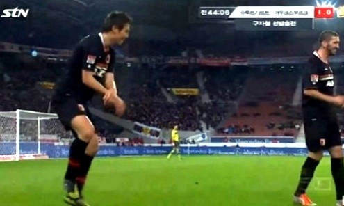 시즌 2호골을 터뜨린 구자철(23·아우크스부르크)이 골 세리머니로 말춤을 춰 기쁨을 표현했다.