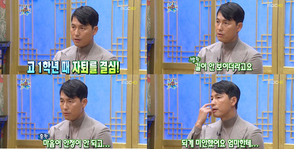MC 강호동은 "고 1학년때 자퇴를 했더라"라고 묻자 그는 "네 고등학교 1학년 여름방학 때 직접 자퇴서를 냈다"고 고백했다.