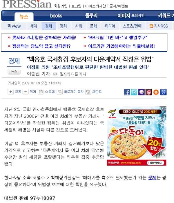 청와대 민정수석을 맡으면서 ‘다운계약서’를 작성한 게 ‘퍽이나 깨끗하겠다’는 식이다.일부 네티즌들은 이 같은 민통당의 ‘졸렬한 변명’에 박영선 민통당 의원의 지난 7월 발언을 들이대고 있다.