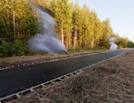 그러나 이 길은 바닥 전체가 ‘트램펄린’으로 이뤄진 마법의 장소다. 길 전체가 ‘트램펄린’으로 돼 있기 때문에 보통의 길처럼 걸어서 움직이는 것이 매우 힘들다.