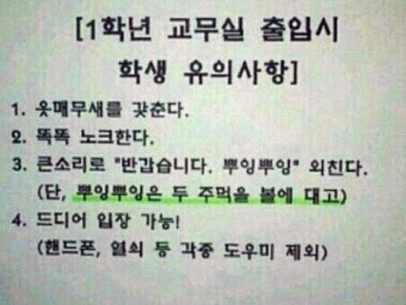 “교칙을 교무실에 붙인 선생님 센스 만점”
