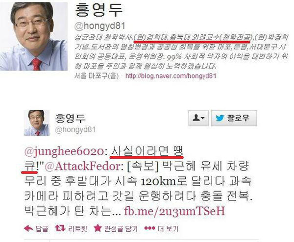 이러한 소식이 알져지자 한 트위터리안은 “사실이라면 땡큐”라는 글을 남겼고 전 통진당 홍영두 부위원장은 이 글을 리트윗했다.